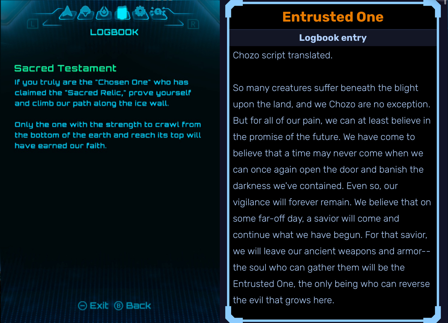 There are a myriad of design choices that cut away at the heart of what it means to be a Metroid Prime game. Let’s start with the scan visor, as it’s arguably the most important piece of what made Prime feel so unique. This thing was a dweeb’s best friend back in 2001. Every random computer in the Space Pirate research facility in Phendrana Drifts carried distinct and interesting text even if they didn’t add an entry to the logbook. In the Ice Belt, I felt familiar echoes of this design idea (maybe too familiar, as an aside) in a research room full of computer monitors: hell yeah, gimme that sweet lore. Yet what I got was the bare minimum, with every single terminal in the room yielding the same damn text. Scanning things on the quest for 100% logbook completion used to feel like a treat. I remember telling my brother “I’m on a scientific mission!” during my first Prime playthrough (he scoffed, but I had the last laugh when we realized it was part of getting 100% completion). Now, you’re going to read a bunch of dull text on the way to the stuff that actually matters. In a similar vein, the Lamorn lore entries are rote and factual where Chozo and Luminoth lore was evocative and mysterious. Compare for yourself below: